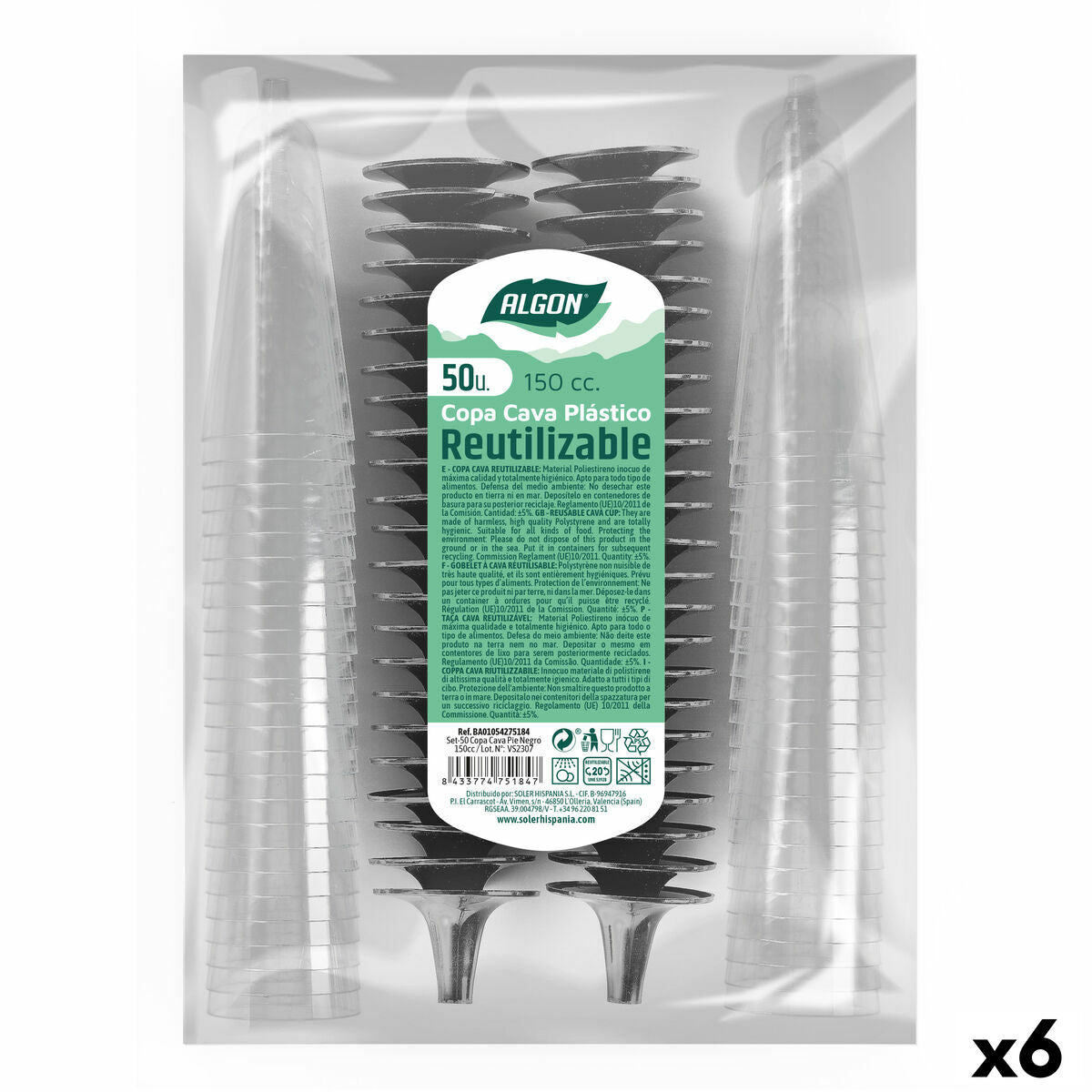 Genanvendelige cavaglas Algon Sort 6 enheder 150 ml (50 Dele)