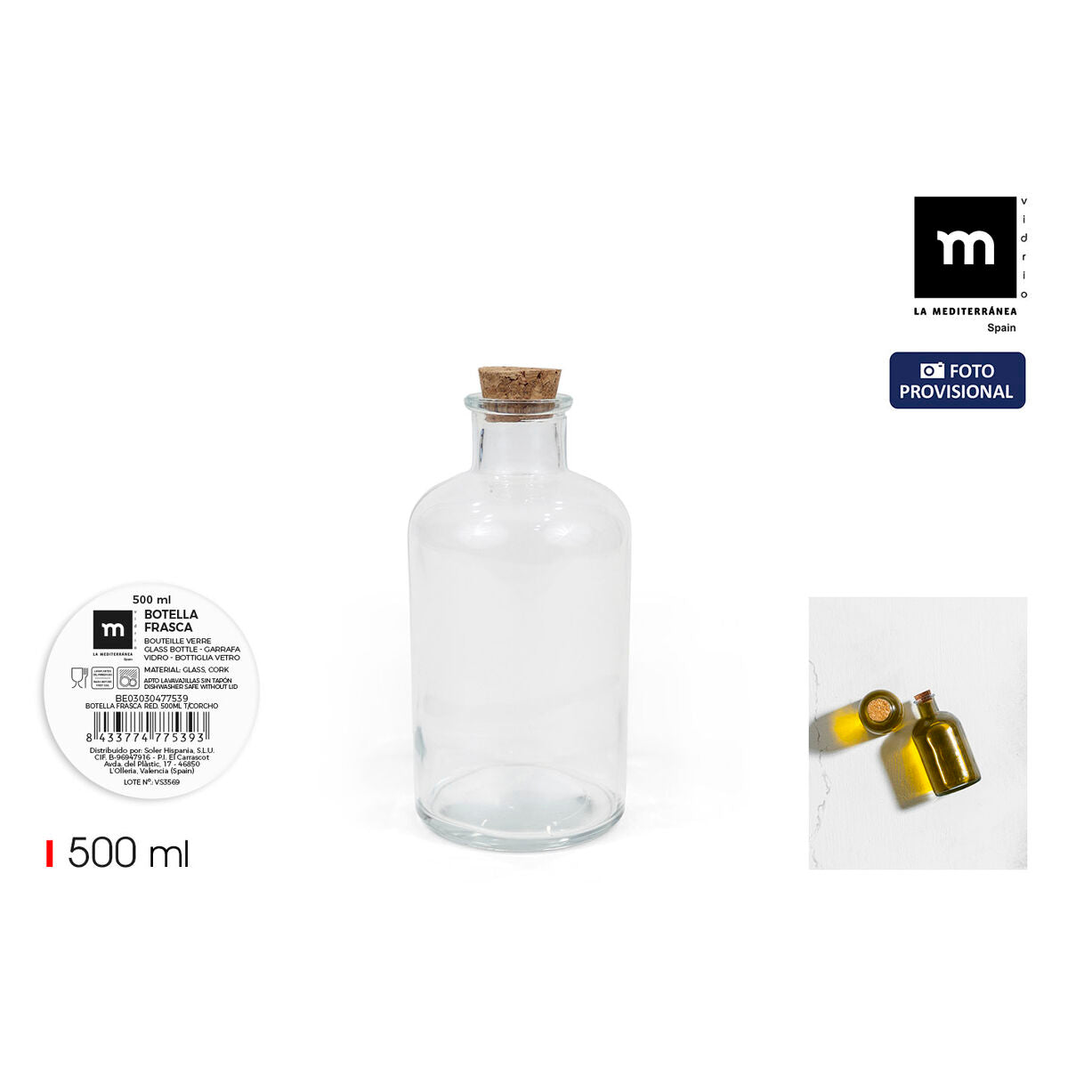 Glasflaske La Mediterránea 500 ml 0,5 L (16 enheder)