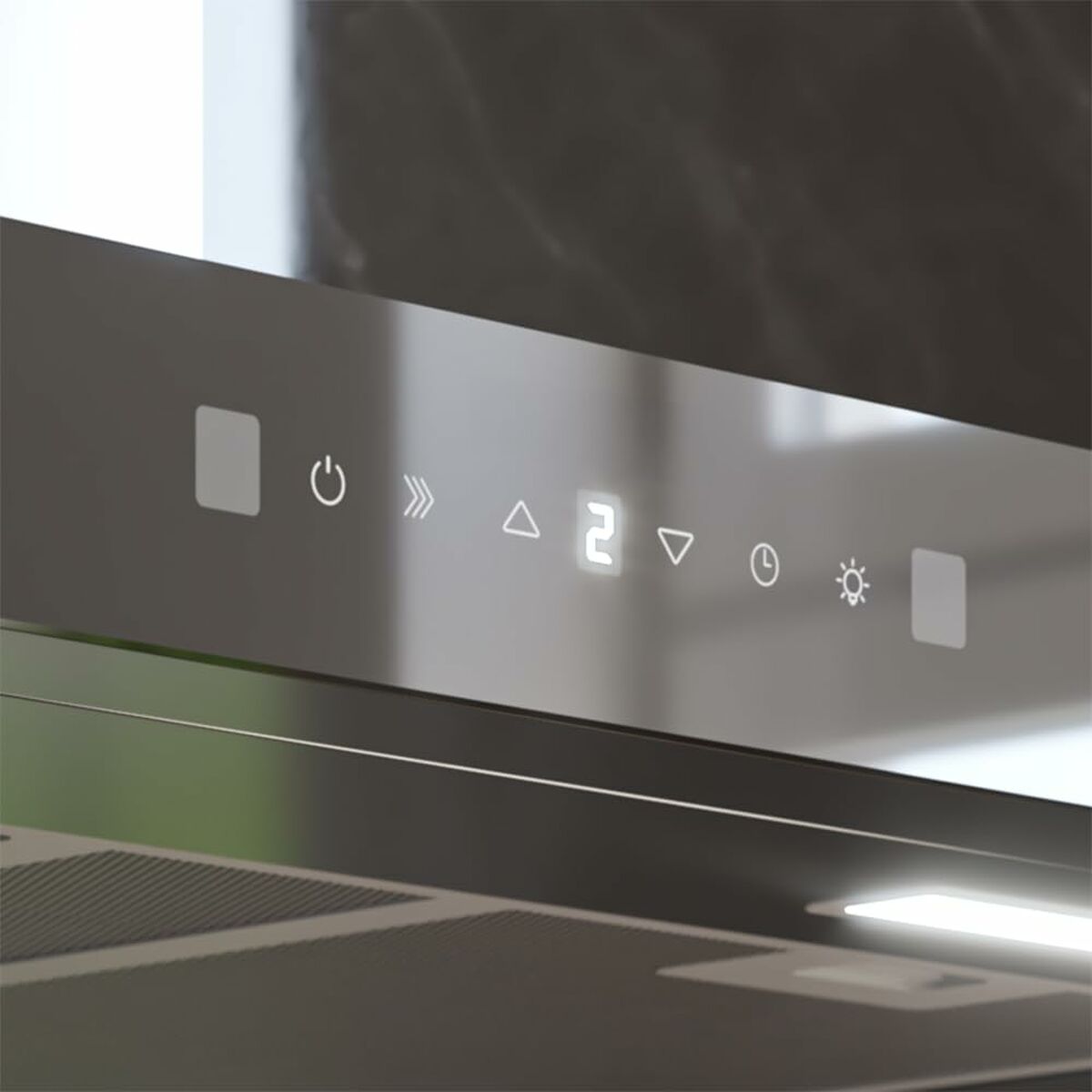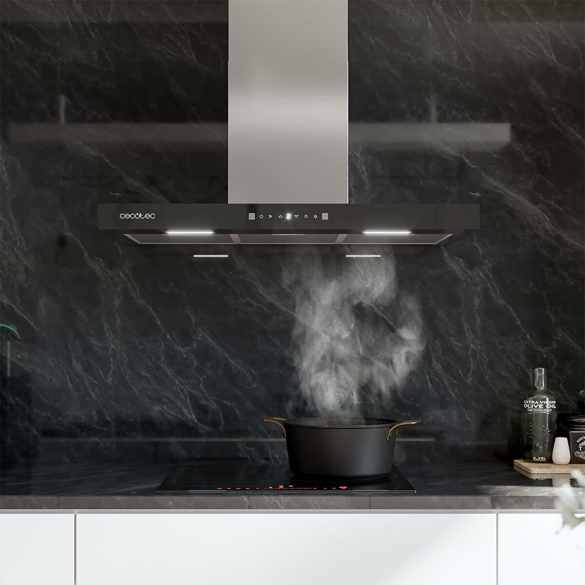 Den konventionelle emhætte Bolero Flux TT 905500 fra mærket Cecotec er en vægmonteret emhætte, der kombinerer effektivitet og funktionalitet med et elegant design. Med en bredde på 90 cm og en front i sort glas tilføjer den et moderne og stilrent udtryk, der passer perfekt til moderne køkkener. Den har en kraftfuld 70 W motor med en sugekapacitet på op til 550 m³/t, hvilket effektivt fjerner røg og dampe under madlavning. Emhætten har energiklasse A++, som sikrer effektivt energiforbrug og maksimal besparelse i daglig brug. For større komfort og præcision har den et berøringskontrolsystem med tre effekttrin og en booster-funktion til øget sugeeffekt ved behov for hurtige resultater. Den er også udstyret med avancerede teknologier som Hand Movement Control, der gør det muligt at styre emhætten med håndbevægelser, samt Delay Function, som kan programmere automatisk slukning for at undgå unødvendig drift. Til filtrering indeholder den specifikke filtre for optimal ydeevne: et fem-lags aluminiumsfedtfilt, der beskytter motoren og gør rengøringen nemmere, samt to 176 mm kulfiltre til effektiv lugtfjernelse. Den inkluderede LED-belysning forbedrer synligheden og viser driftstatus, samtidig med at den er energibesparende. Produktet leveres med et monteringssæt til nem og sikker installation. Samlet set tilbyder emhætten Bolero Flux TT 905500 fra Cecotec en god balance mellem kraft, design og energibesparelse, ideel til hjem, der ønsker et rent og røgfrit miljø uden at gå på kompromis med æstetikken.