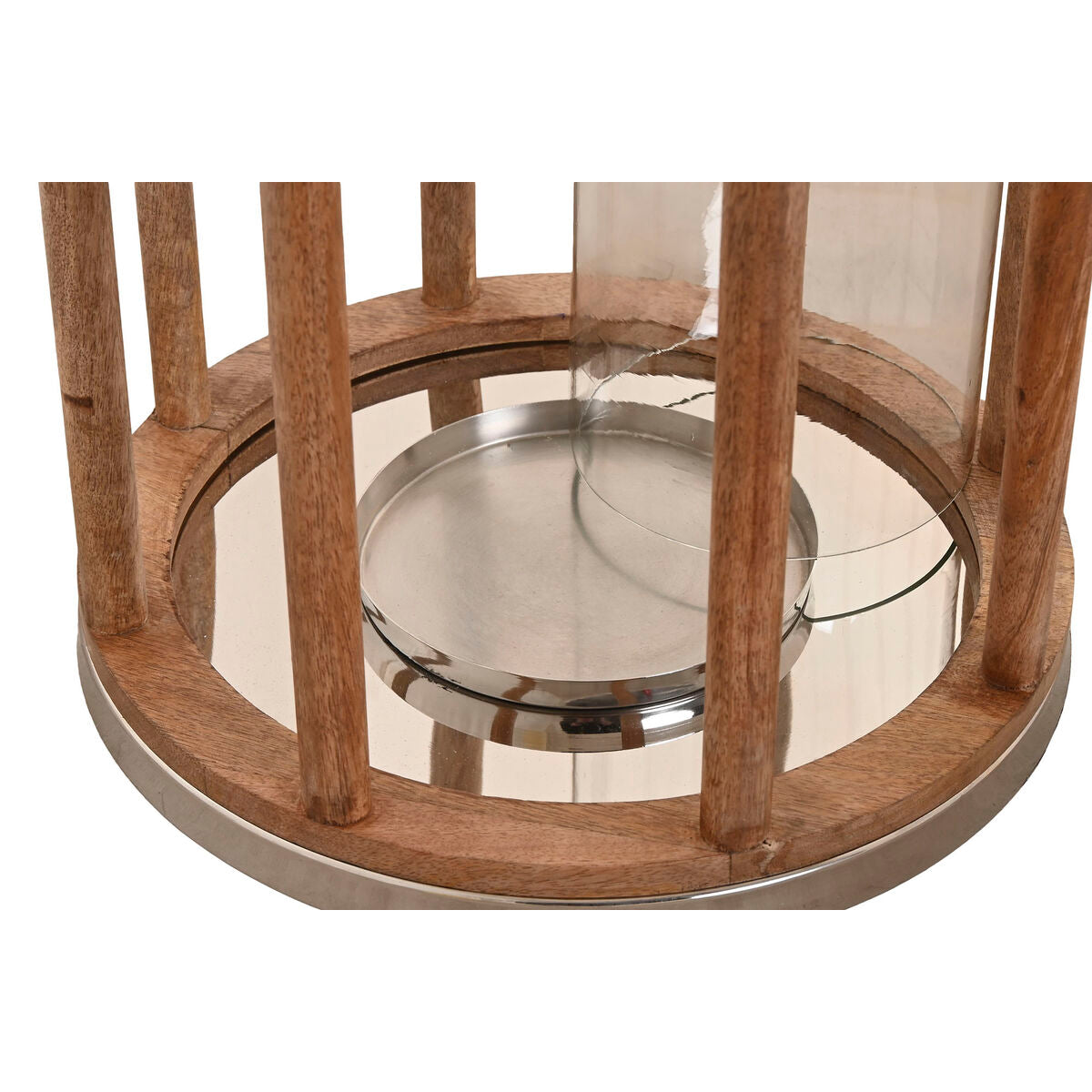 Lyseholder Home ESPRIT Brun Sølvfarvet Krystal Mangotræ 30 x 30 x 53 cm
