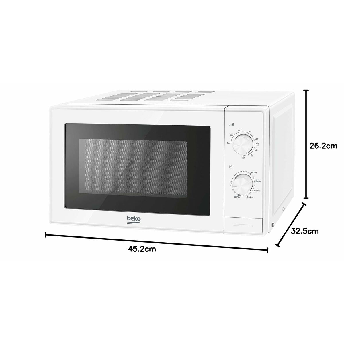 Beko MGC 20100 W. Placering af apparat: Bordplade, Indvendig kapacitet: 20 L, Kontroltype: Dreje. Tilsluttet belastning: 700 W. Bredde: 452 mm, Dybde: 325 mm, Højde: 262 mm