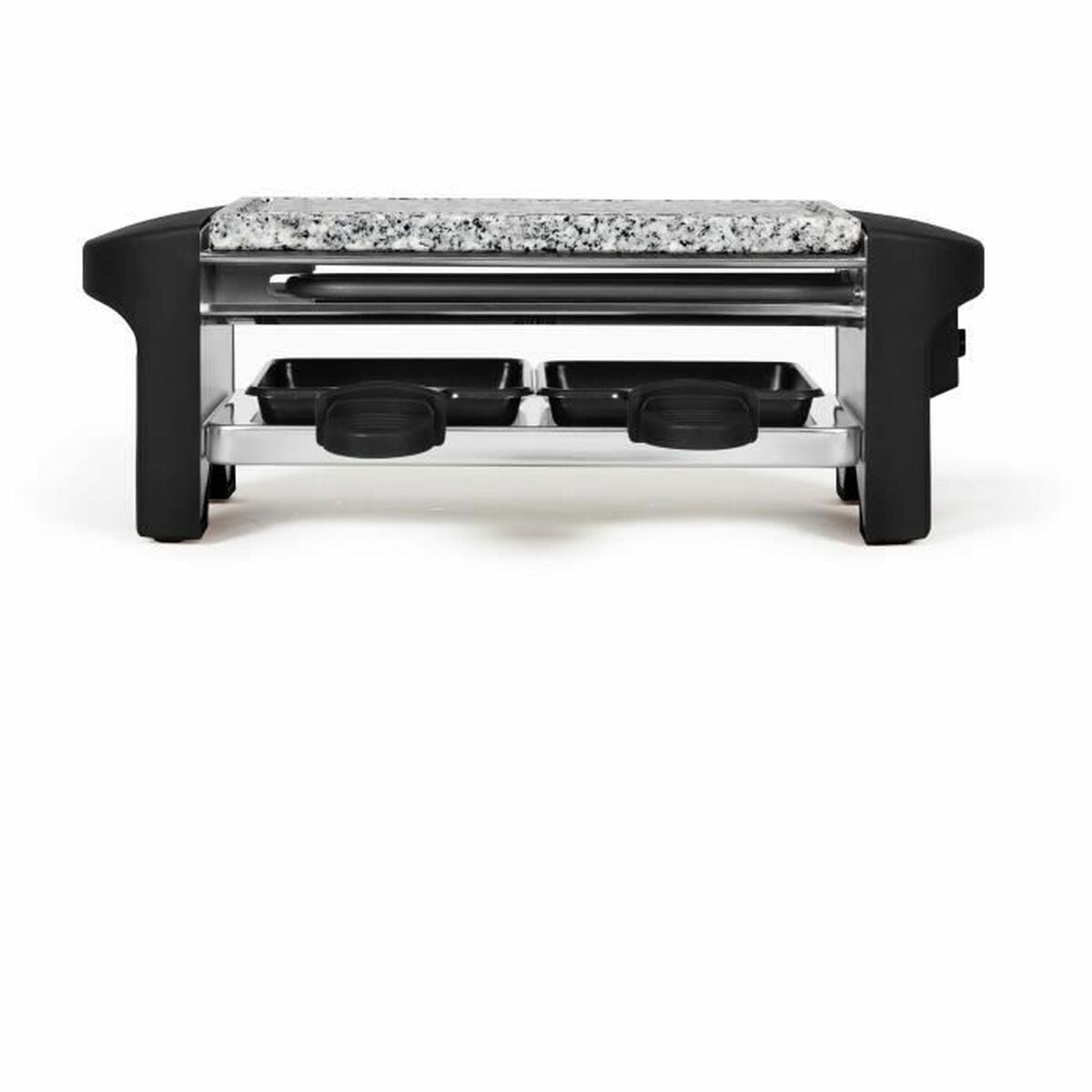 Raclette DOC156N fra mærket Livoo er en enhed designet til at tilbyde en enkel og bekvem madoplevelse, ideel til 2 personer. Dens konstruktion kombinerer en elegant kombination af sort og grå farve, som let passer ind i ethvert køkken- eller spisemiljø. Kogeoverfladen er lavet af sten, et materiale der sikrer jævn varmefordeling og en naturlig og sund tilberedning, hvilket gør det muligt at tilberede smeltet ost, kød, fisk eller grøntsager ensartet. Med en effekt på 350 W garanterer den effektiv opvarmning og passende kontrol til at opretholde den ideelle temperatur under brug uden unødvendigt strømforbrug. Denne raclette har et kompakt og funktionelt design, egnet til daglig husholdningsbrug, og tilsluttes via EU-stik, hvilket gør den nem at bruge i hjem med standard europæisk elnet. Kombinationen af effekt, størrelse og materialer gør denne model til et praktisk valg for dem, der søger en kvalitetsraclette med tilstrækkelige funktioner til intime sammenkomster eller uformelle middage. Kort sagt er Livoo DOC156N et alsidigt og tilgængeligt apparat, der opfylder grundlæggende krav til ydeevne og holdbarhed i kategorien raclette til personlig eller parvis brug.