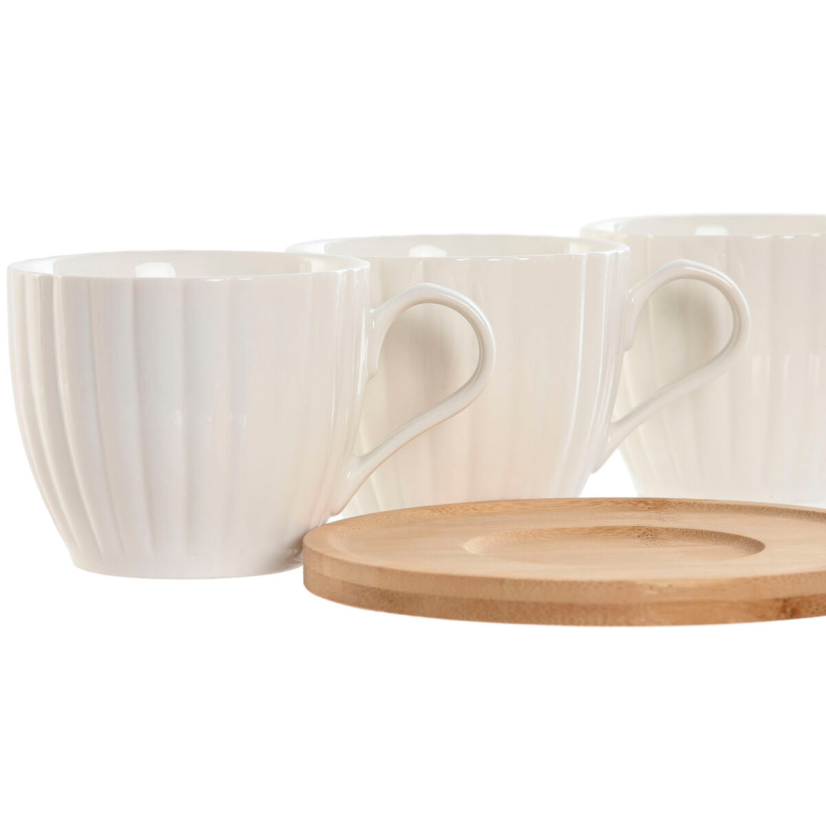 Sæt med 6 kopper og underkopper Home ESPRIT Hvid Natur Bambus Porcelæn 220 ml