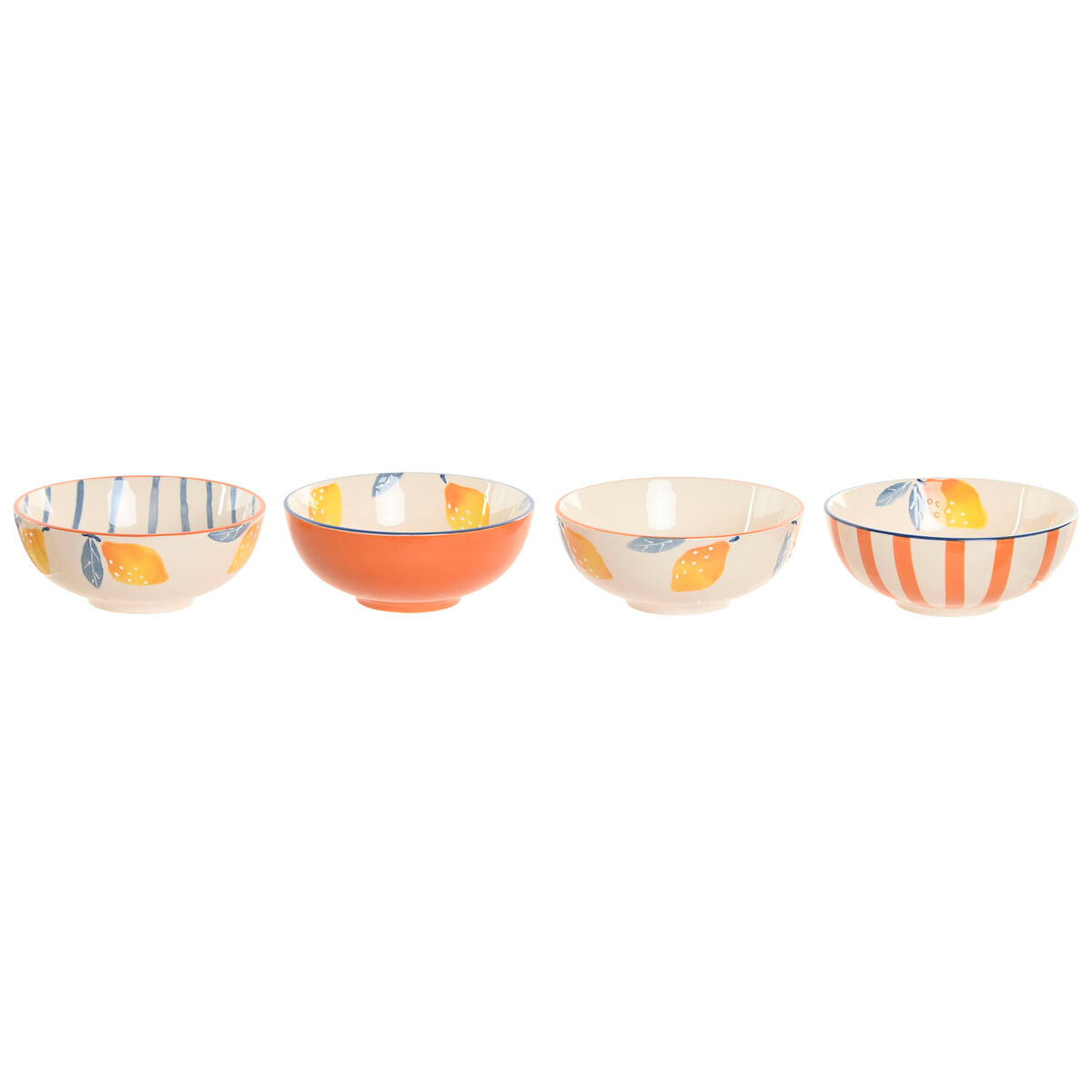 Skål Home ESPRIT Gul Blå Hvid Orange Aluminium Stentøj Citron Middelhavet Med relief (4 enheder)